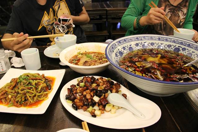 1:30出来,到磁器口用午餐,排队采购陈麻花。午餐点的鸡杂火锅,毛血旺, 另加了魔芋和豆腐皮,真心好吃,一个人吃了两碗米饭还觉得没吃饱,菜都捞的干干净净,仍然意犹未尽,安慰自己说还要去吃小吃呢,这才作罢,其实出来后就感觉到吃撑了。这是一条商业街,所以我们只是简单单转了一下,3:30出来返回酒店休息。