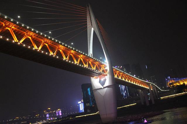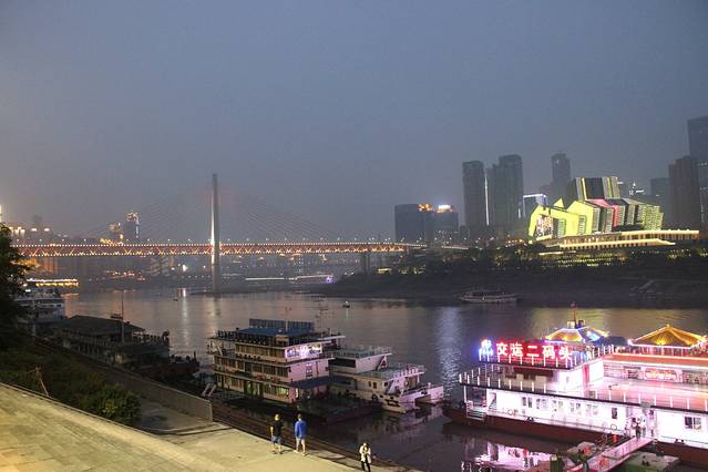 6点出发,去解放碑参观,然后直接步行到码头,沿路的确有很多卖两江游船票的小店,快到时看见一家身穿制服的工作人员卖票的门店,一问直接就说满江红号50(第二天早上看见某网站有特价促销票36元/人),只有二十分钟就开船了,买好票直奔2号码头,从入口处依次是6.5.4.3.2号码头,我们在最里面看见船,径直上三楼,加费30元/人,每个人可以单点茶水或啤酒饮料。落座后不久,7:40开动,看某攻略说只有周五到周天这里所有的灯才开,总之感觉景色一般,没有想像中好,的确只有洪崖洞那里还不错,如果没事儿有时间了,去品品茶,吹吹江风也不错,8:35返回码头,停靠就等了10分钟。走出码头一眼就看到440公交车,上车一看,全程只有4站路,就到小米市(即解放碑),前3站沿江行驶,间距很短,顺路可以再浏览江边夜色,最后一站太长了,全程约15分钟,而且返程走的不是一条路。下车后请教当地人哪家火锅好吃,推荐九门火锅,上楼时一查美团还有团购,于是现场买了两张代金券,享受一顿正宗重庆九宫格火锅。用完餐已经11点了,过条街就到了我们住的汉庭酒店,一看楼下的某火锅店居然还在排队等位,早知道就到这里吃了。