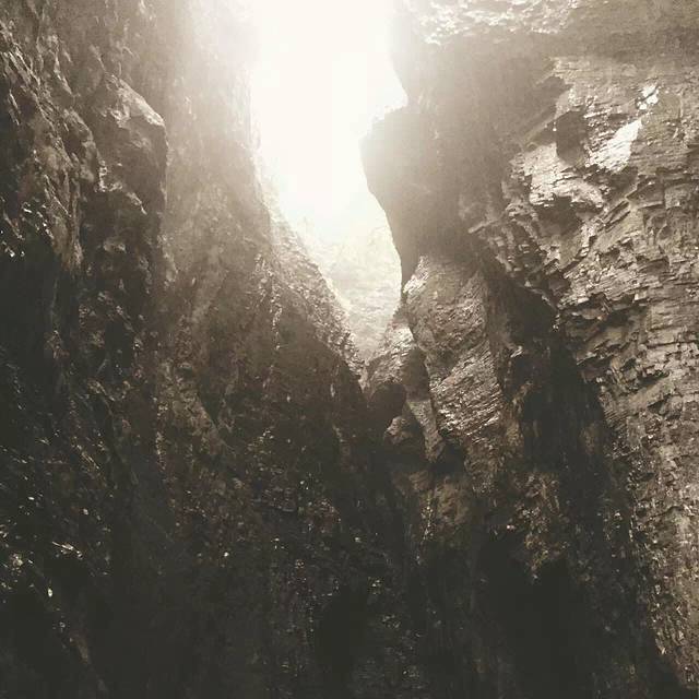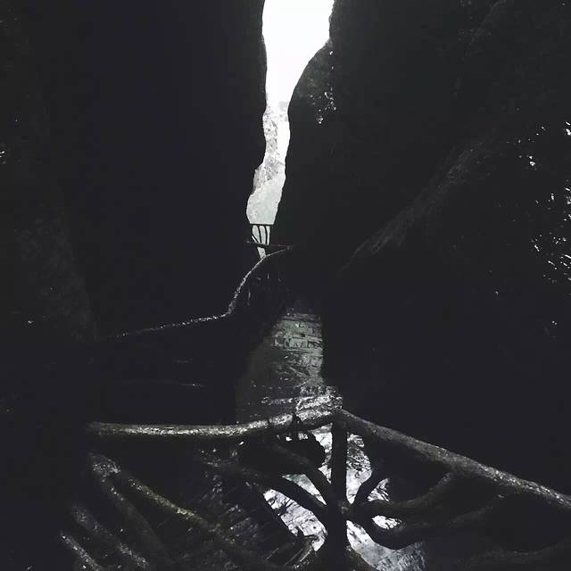 山里没有人,只有我们,老道湾一直有里面有个峡谷,想上山必须穿过去,正好下雨,山上的水就在我们脚下的梯子下面,声音特别大,很害怕的!特别刺激!