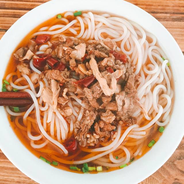 正好看到一家米粉店,就在公交站对面,人很多,所以立刻下车也去吃了一碗,这边人吃米粉好像都标配一杯豆奶,哈哈很奇怪~