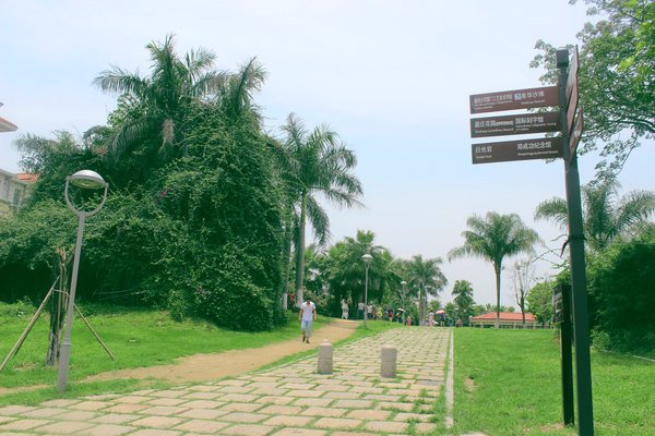 两旁的椰树长得很高很高,形成了一处绿荫小道,离日光岩的距离似乎更近了一些。看似不大的小岛屿,若果真的走上一圈,也需要花上大半天的时间。