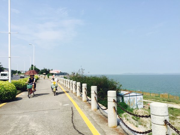 在环岛路一带有很多的租车点,很多要价很高,30元/小时左右,可以在旁边的个人租车地方租车,可以杀价,我们最后以50元两辆的租了一下午不限时间。一下午的时间,我们就在环岛路,知道时间到了该要回去的时候,变不舍的离开。