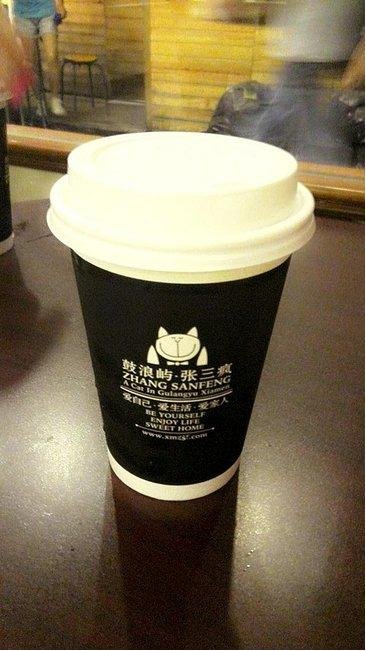 慕名前往者,其实很快就能找到这家奶茶铺,它在鼓浪屿的龙头路,离轮渡码头很近,相隔不远就有两家,生意真是不错,我们去了几次,好不容易才等到位置。店铺装潢挺有情调,宣扬“爱自己、爱生活、爱家人”,每个杯子上都有这句话,也强调“快乐每一天”,卡通衣服上就标着这句话。