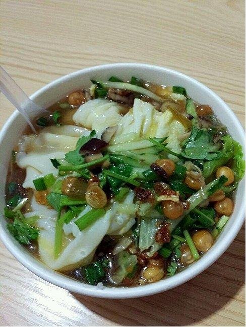 找了一个开在夹道里只有三张桌的苍蝇馆子,点了一碗肠粉,看起来像凉皮,不过口感不错,这么一大碗才4块钱!