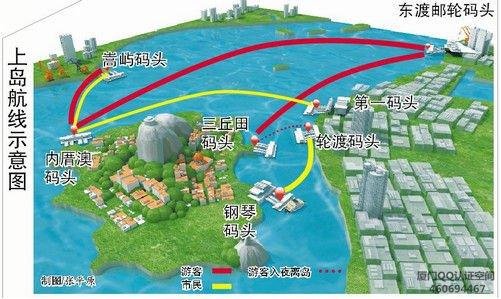 红线是登岛的路线