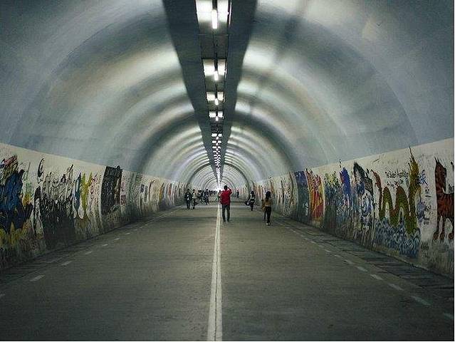 厦门大学西边有条芙蓉隧道,是学生们往返寝室和教学楼的路。