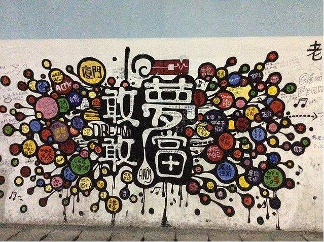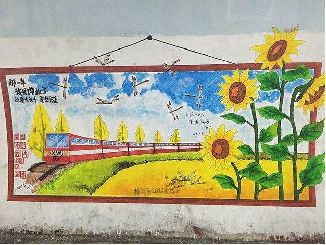 隧道里都是学生的画,不得不感叹厦大的学生真的很有才!