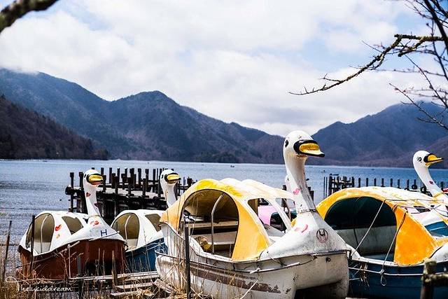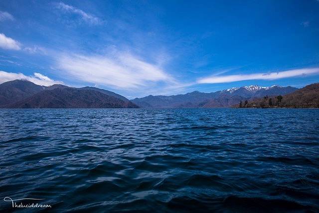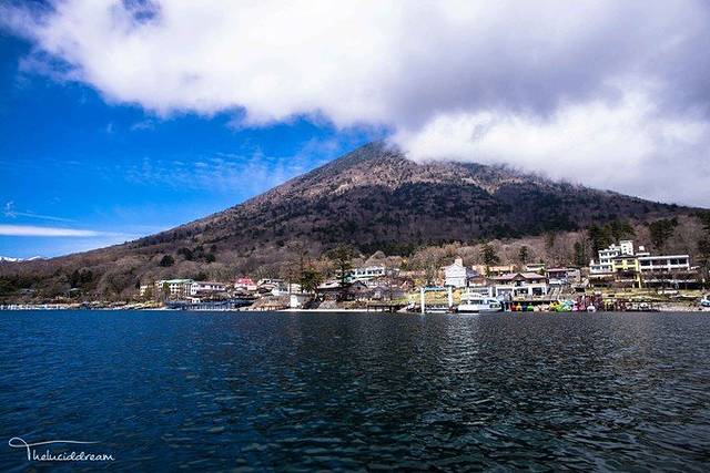 男体山脚下的中禅寺湖。号称“比清空更加蔚蓝”的火山湖泊,湖水清澈,游人稀少。湖边有大型游览船及天鹅船/手划船供出租(半小时价格约1000 - 2000日元)。湖边围绕着众多旅馆及餐厅,其中也包括著名的星野集团旗下界 日光酒店。