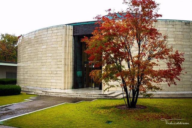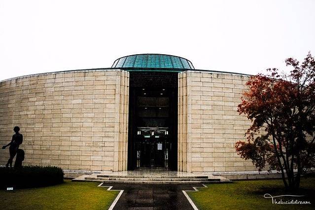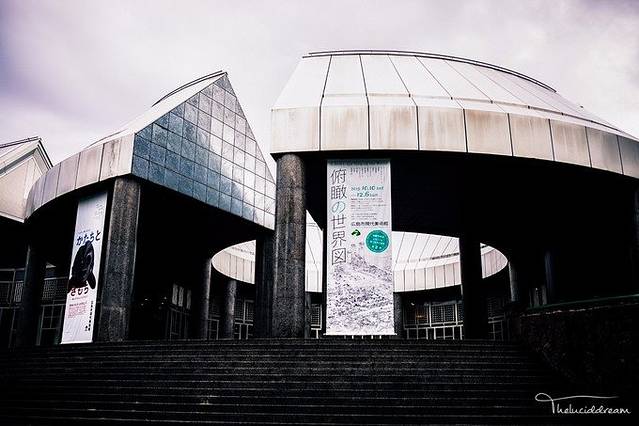(广岛市现代美术馆坐落于比治山间,由“日本建筑界三杰”之一黑川纪章设计建造,于1989年开馆,是日本第一座致力于现代艺术展览的公立美术馆。馆藏冈本太郎、奈良美治、小野洋子等现代艺术家作品;本文写就时正展出《俯瞰の世界图》之广岛城市历史摄影展。)