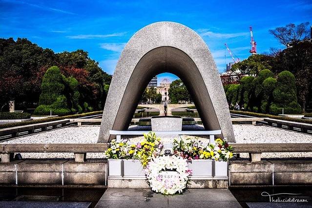 广岛和平纪念公园园景。公园1954年落成,此后每年8月6日,公园举行纪念仪式,悼念原子弹爆炸及战争死难者。对于原子弹“小男孩”造成的死难者数字无准确估计,但一般认为爆炸瞬间造成的直接死亡约8万人;截至1945年底,死亡人数进一步上升到9万至16.6万人。而由辐射引发的癌症等后遗症造成的慢性死亡及恶性遗传带来的影响则无从估算。
