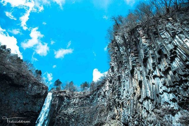 华严瀑布,位于中禅寺湖东侧,为日本三大名瀑之一。源于附近的中禅寺湖底的高水压,水流从97米的断崖飞流直下,甚为壮观。游客可花费530日元乘电梯前往瀑布下方的石台,以低姿态观赏。
