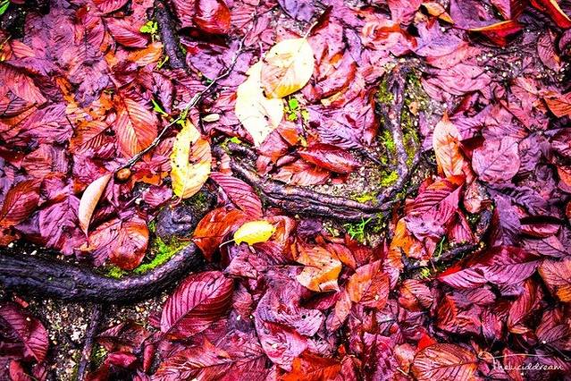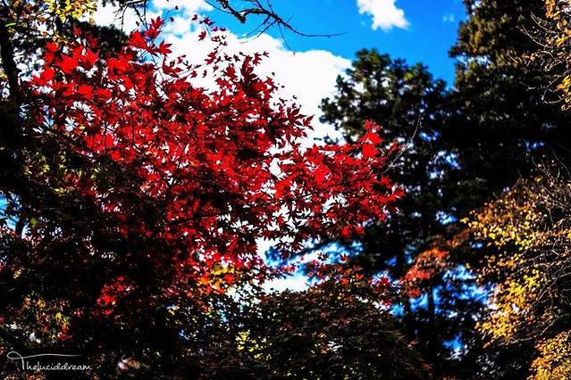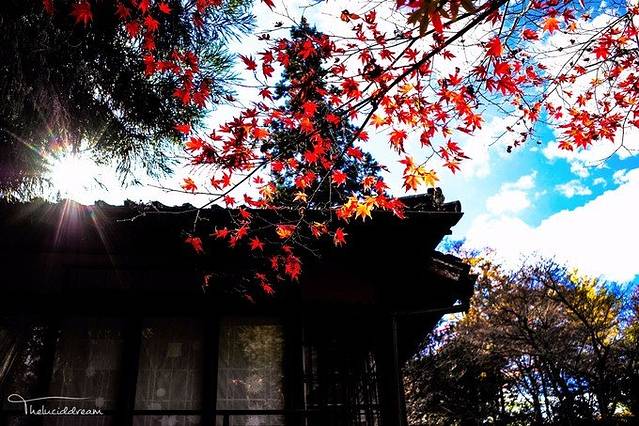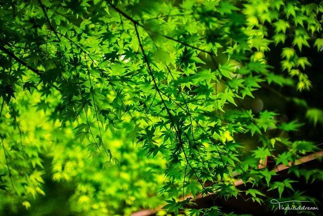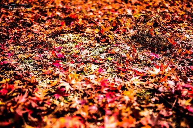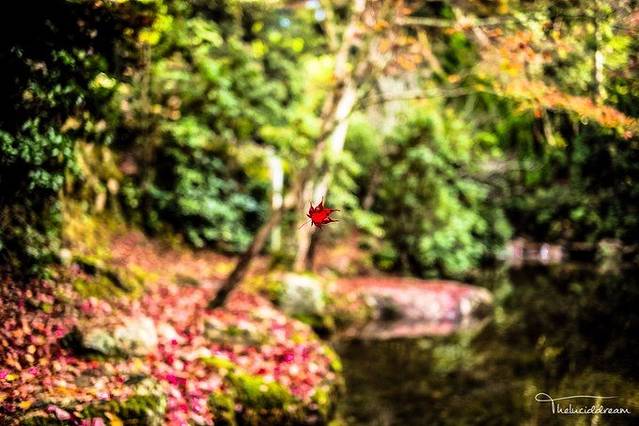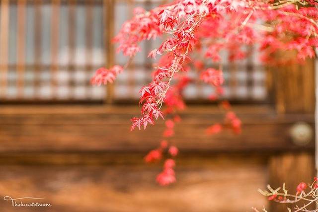 想着,你走到那红叶谷,你的头顶脚下已无处不是红叶的领地,红叶悬着,飘着,躺着,是红叶的雪。你嗅到某种不言不语的灵气,那是秋天的山和枫树的神。风在这个时间现身,遍野的叶便同声唱起歌来,瞬时间贯彻了你的耳膜。你几乎无法自控地,对这山间的神灵崇拜起来了。你终于明白,这些历尽千万年仍一尘未染的绝景背后,除了岛国对自身生存所抱持的强烈的忧患心态,还有人们在对神道的耳濡目染中所形成的,潜意识中对那自然之精灵的至高尊重。