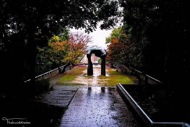 一路走到纸屋町的广岛市中央公园,你的鞋湿透了,雨伞忙不迭面露愧色地道了声歉。一座美术馆于是看准时机,恰如其分地出现在你眼前。你在这里和雨匆匆道了别。