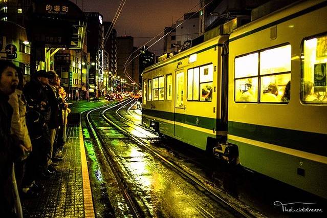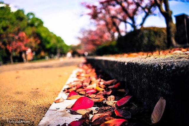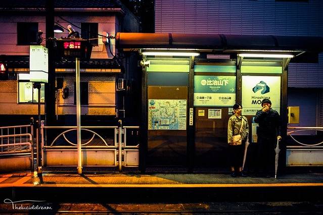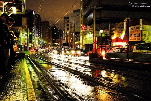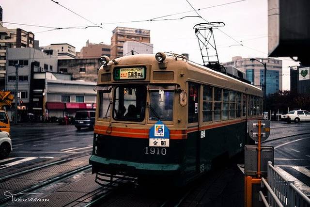 沿着百年历史的路面电车轨向城市的中心走,古旧的电车谨小慎微地在身边缓缓穿梭而过。你零碎想起这电车的历史,不禁耸起鼻翼,努力想嗅到一丝70年前原子在这座城市上空骤然碰撞、分裂又爆发的味道,却仅仅接收到一抹雨的芬芳。罢了——你于是蓦地睁开眼,你的大脑瞬间又接收到无数新的信息——表情静谧的路人,一尘不染的街,雨水聚集在地面柔亮的反光;你又打开双耳,雨水滴落在伞上的淅沥声和耳机里断断续续的慵懒爵士乐鱼贯而入,你一时感到头重脚轻,于是突然发现了脚下无数缤纷花叶,在雨的催化下,发出的人间最浓烈的、最高亢的呐喊。