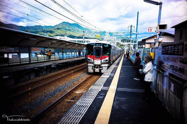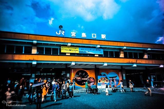 火车离开广岛市中央车站,沿濑户内海海岸一路向西南方向进发。行驶约20公里后,你在宫岛口站下车。湛蓝天空自由落体般灌溉着你。你站在渡轮码头往对岸望去,视线搜索着让你在未来时间魂牵梦萦的那抹深红。