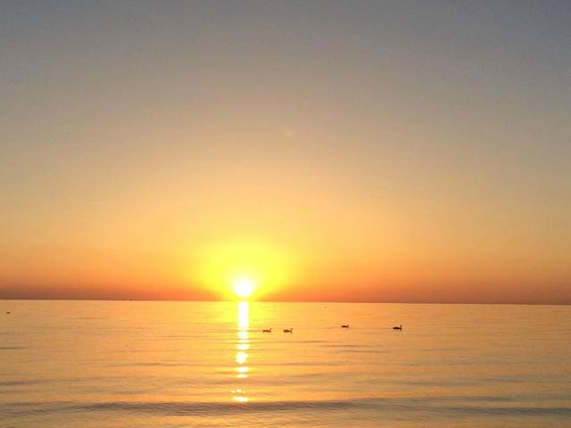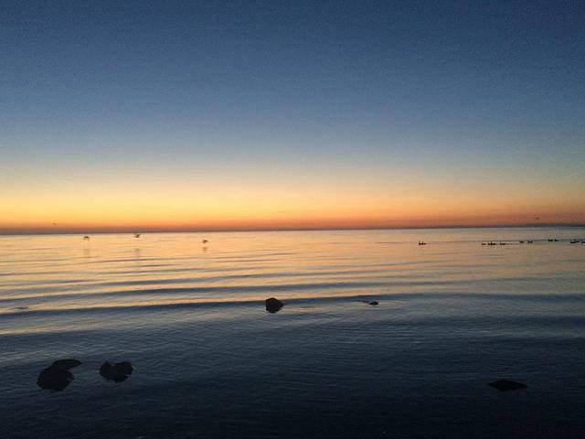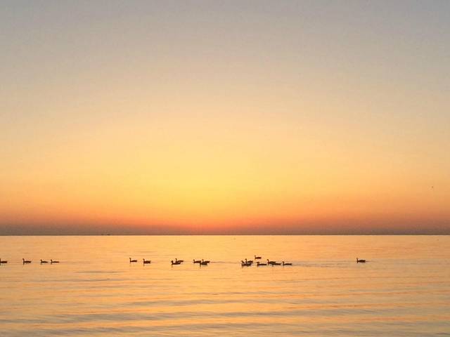日出前的湖面也很美,很有层次,湖面上有游来游去的水鸟。