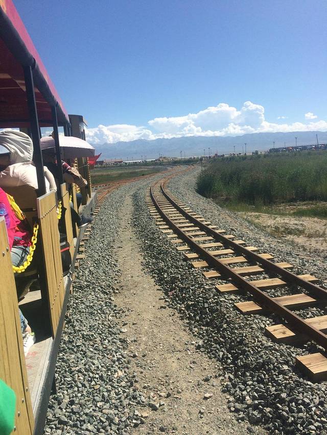进门后可以自费选择乘小火车或电瓶车。电瓶车只是到湖边的“天空之镜”,那里人超多,密度很大,有几个雕像(盐雕?)。要进入盐湖深处,必须沿小火车路一路走进去。很远、很晒。小火车平时1小时趟,旺季半小时1趟。一共有3辆车,1辆车坐80人,要排队买票,1人最多买4张票,坐车也要排队。因为外甥女就是冲着小火车去的,虽然我们只有2小时的游览时间,我们还是选择排队坐小火车。实践证明,这是一个正确也非常值得的选择。大概我们一个团也只有我们乘了。