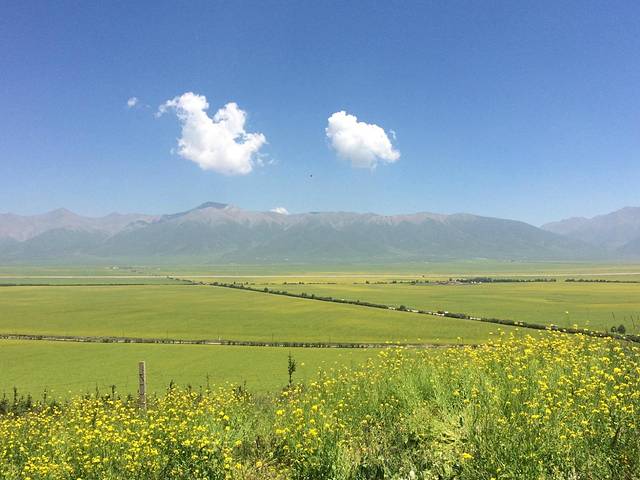 离开二郎剑景区,车沿青海湖前往祁连。一路上的景观倒是不错。远处的青海湖、湖边大片的油菜花、小型沙漠、成群的牛羊,其间还要翻越海拔4120米的大冬树山垭口。