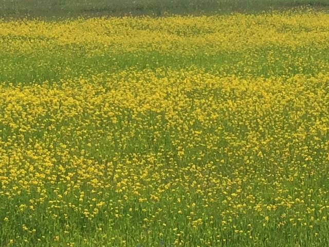 倒是沿途湖边的油菜花开得真是时候,黄黄的一片片。