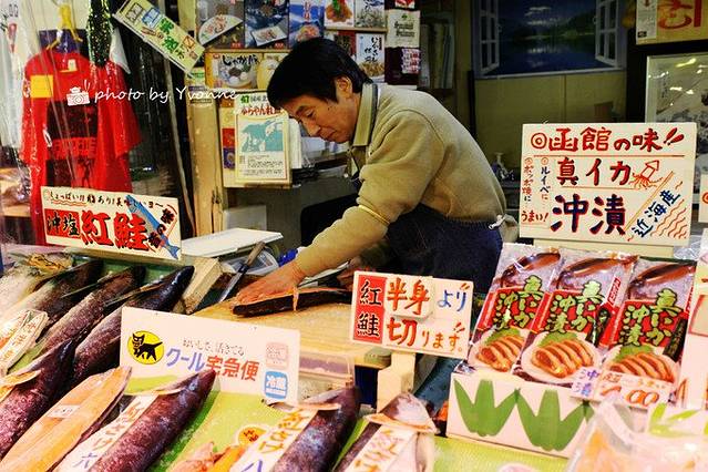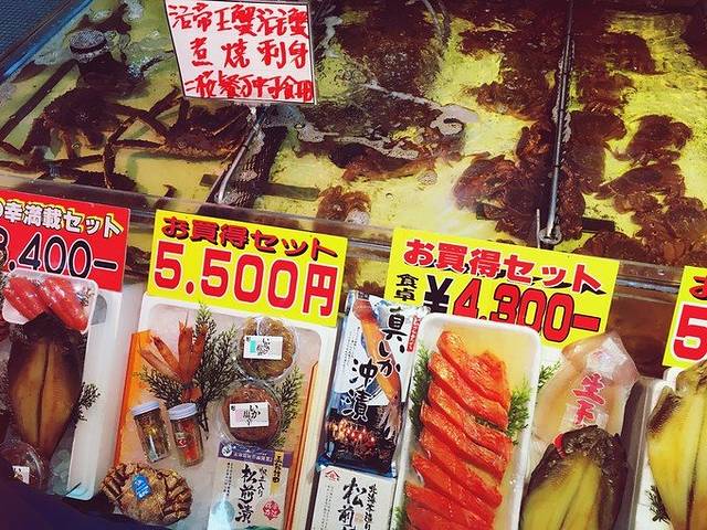 函馆朝市:位于JR函馆站西口不远处的函馆朝市是北海道最热闹的集贸市场之一。朝市有大大小小200多家的店铺和400多家水产店,形成了一个很有当地特色的大型水产市场。