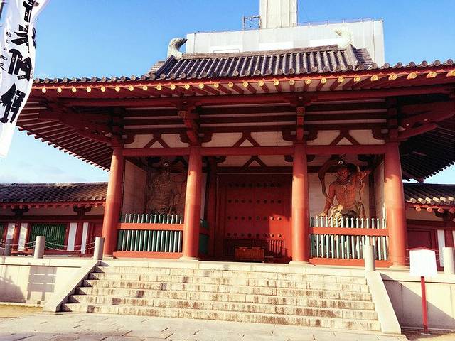 四天王寺:日本最古老的建筑群落之一,相传由将佛教引入日本的圣德太子修建而成,至今保持着最初建造时的格局和部分建筑构造,是日本全国罕见的飞鸟时代建筑。五重塔是该寺的标志性建筑。