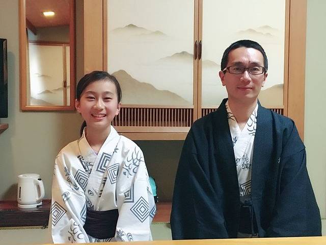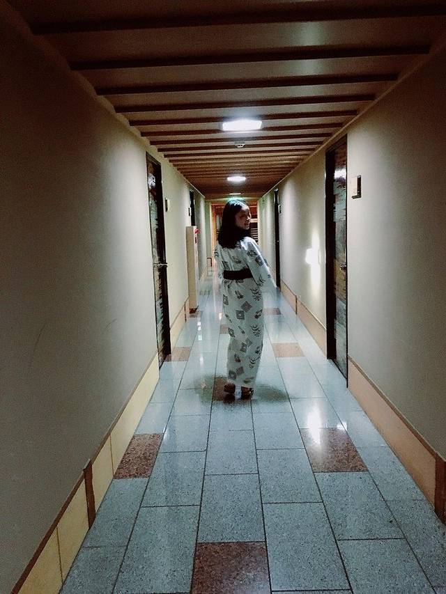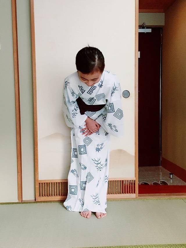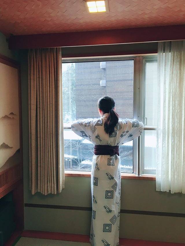 酒店泡温泉,和服亮相,注意左上右下,不要穿反了。