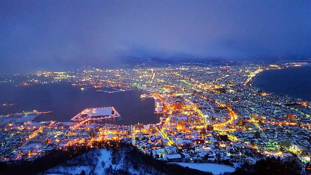 函馆山夜景:被称为世界三大夜景之一,米其林三星级的夜景,是来到函馆不得不看的城市景观。函馆夜景之美在于城市的两边呈现出了两条弧形的海岸线,天造地设,在世界范围内也难得一见。