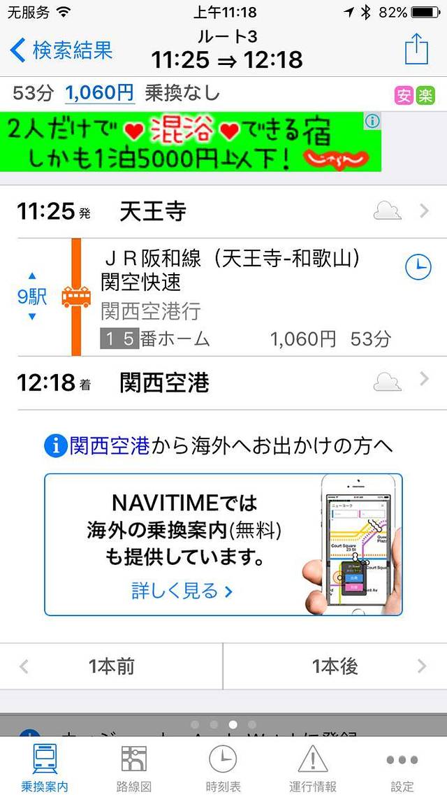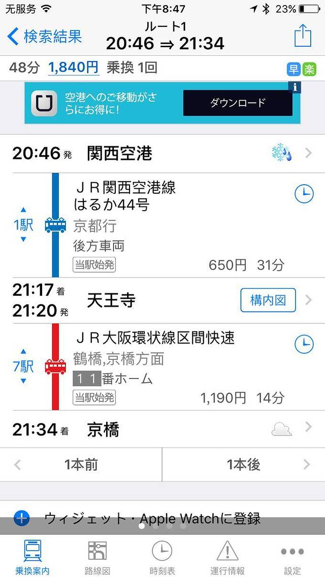 酒店-关西机场「JR环状线-JR阪和线-JR关西机场线」