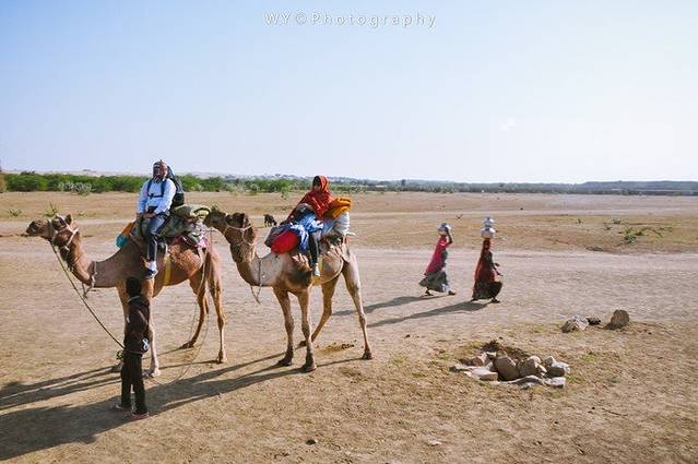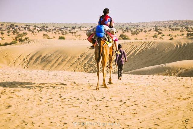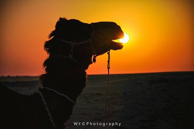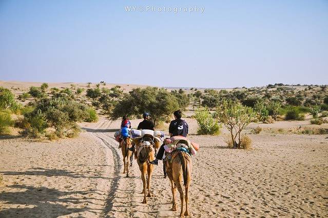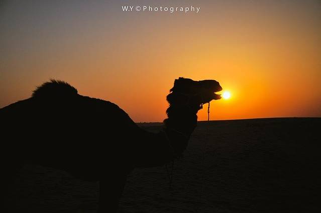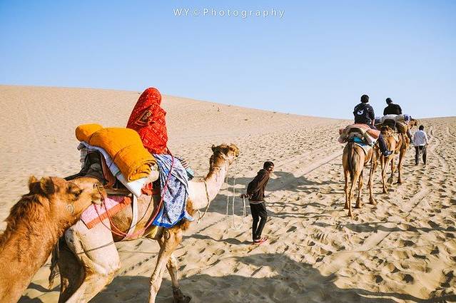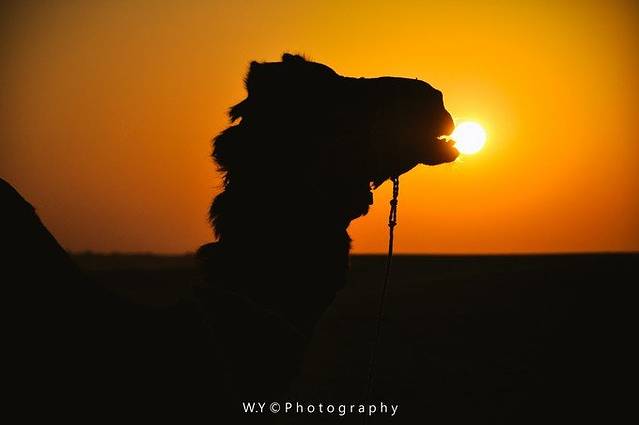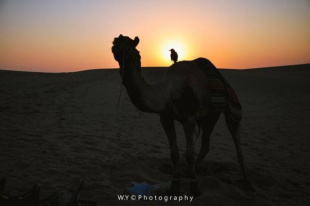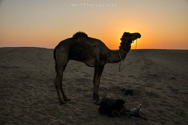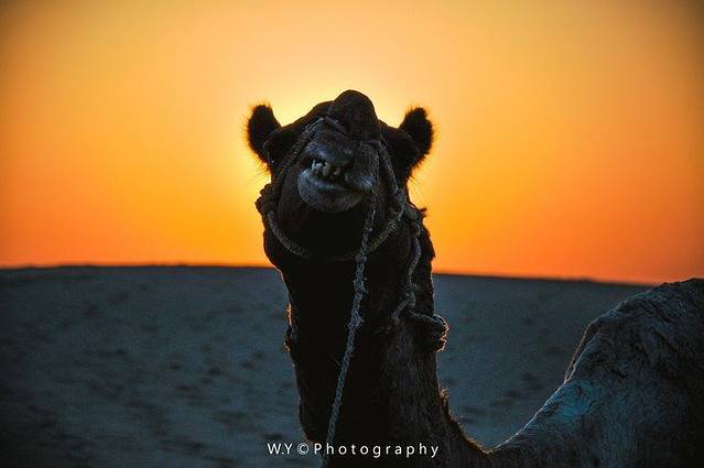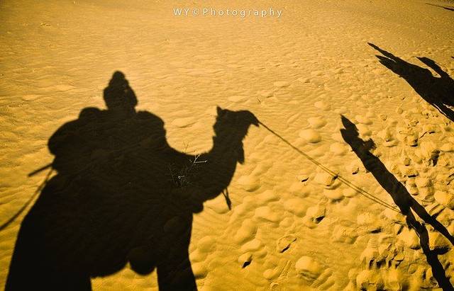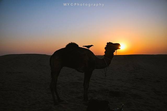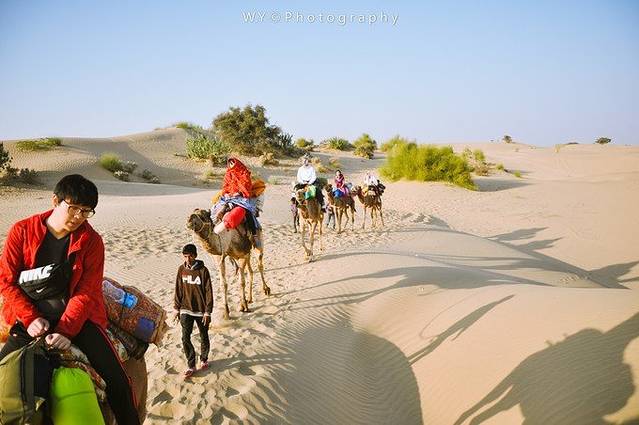 下午一点从酒店出发,Gaji亲自开吉普车送我们去坐骆驼的营地,休息了一下,4点骑着骆驼去沙漠。