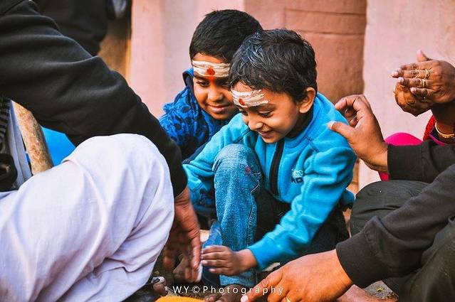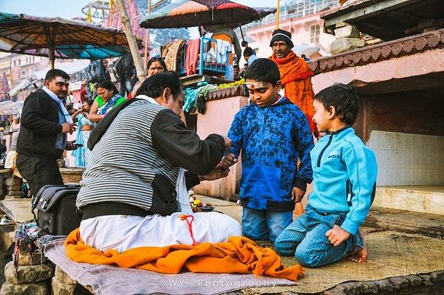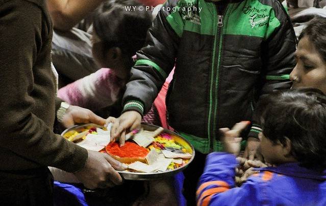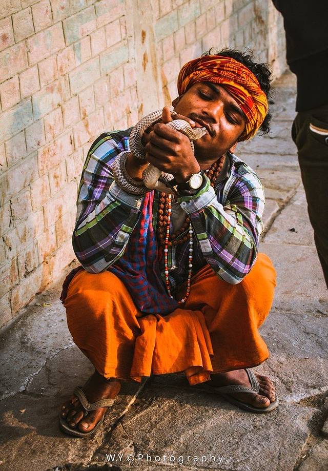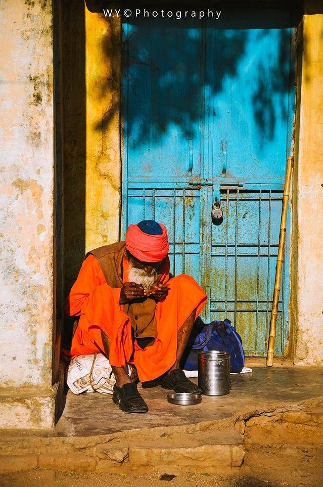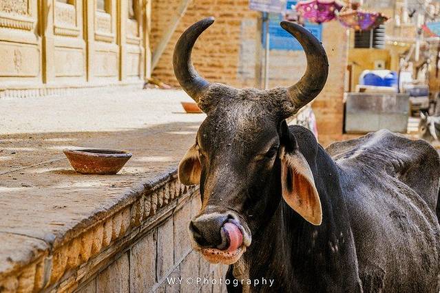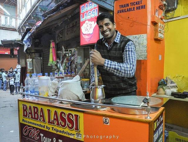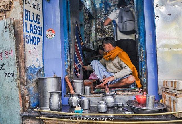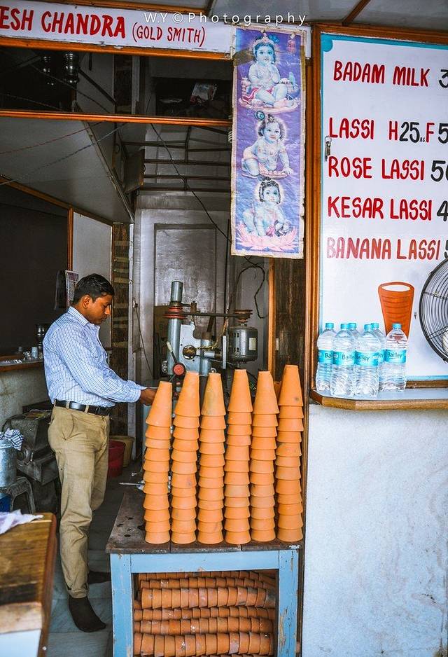 路上左手边有一家专卖牛奶的店,很不起眼,大锅里现煮的,上面结了层厚厚的奶皮,老板还会在奶皮上撒一点藏红花,那是我喝过最香甜浓郁的奶了。先给你用大勺盛满一杯,然后再从大锅里舀一块奶皮,可以要求多加奶皮,最爱那个奶皮嚼在嘴里的感觉,满齿留香。一杯15卢比,连灌3杯记得让老板少放点糖,