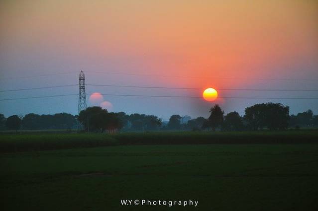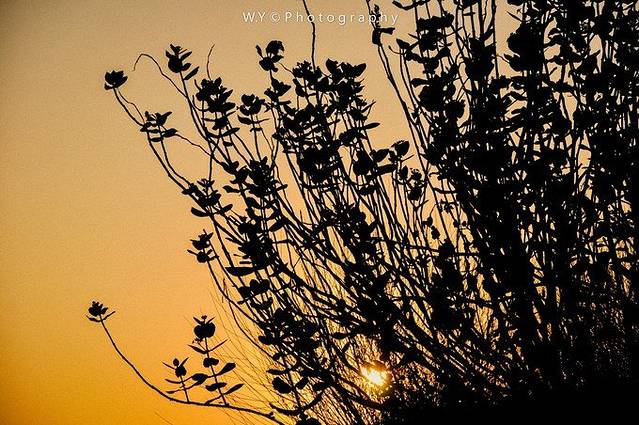 河边日落很美,但观看时注意安全,小心从独木桥上摔下去,尤其是大货车经过时,站到最边边上,感觉车贴着衣服开过,要是车速快一点,估计会被一阵风推倒摔进河里。