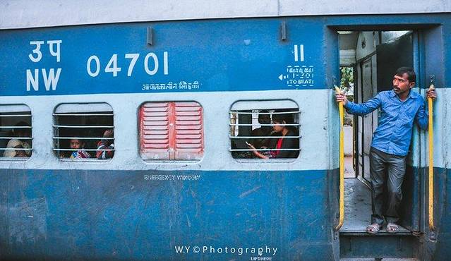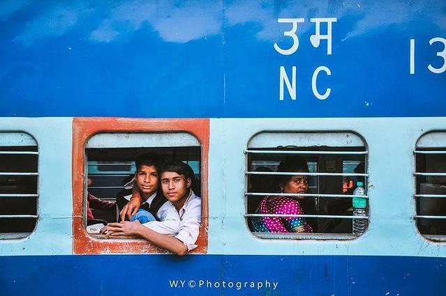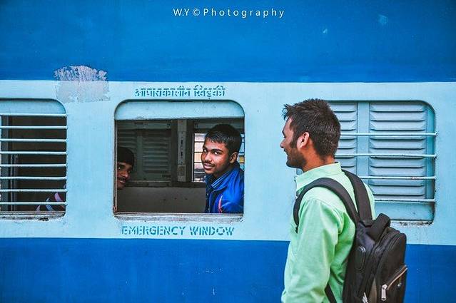火车是始发站,我们准时上车了,窗外等火车的印度小伙,很有喜感的画面