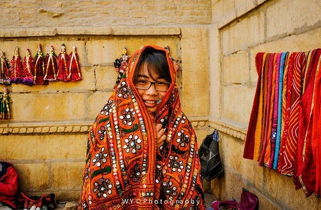 在焦特布尔的火车站被一个人推销他的酒店,没想到从杰伊瑟尔梅尔火车站下来,他还缠着我们,被坑100Rs 把我们拉到他的酒店,其实是免费的,只要我们住下来,但是真的达不到我们的最低要求,甩给他100Rs就转身走了。误打误撞 住在了旁边的一家Gaji Guest house。老板名字就是Gaji,和韩国人做生意,所以90%都是住的韩国游客。前台有个姑娘,忘记是哪个斯坦国的了,是Gaji的朋友,在酒店帮忙,来印度有十多回了。他们极力推荐safari在沙漠过夜的,爸妈觉得有点吃不消,之前一晚又是睡在火车上的。于是就定了住一晚酒店,结果打算洗澡来着,开了半小时,都没得热水,那还不如去住沙漠呢!沙漠过夜的Safari 1200Rs/人,一分钱不让,挺合适的价格。印度人做生意有个特点,要么开高价,你和他砍,要么就是一口价,无论费多少口舌,就是一分钱也还不了的了。