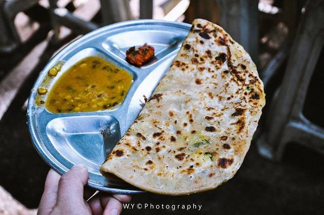 【街边小吃】 肠胃不好的还是悠着点,别尝试了。我们吃的也比较少。最常吃的就是鸡蛋饼加面包了,以焦特布尔的最出名,的确是味道不错,没啥吃,选这个准没错。吃过一次samosa,油炸饺子,里面是咖喱土豆味的,感觉好辣。