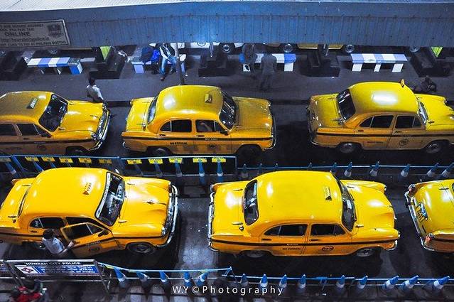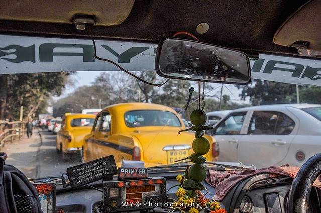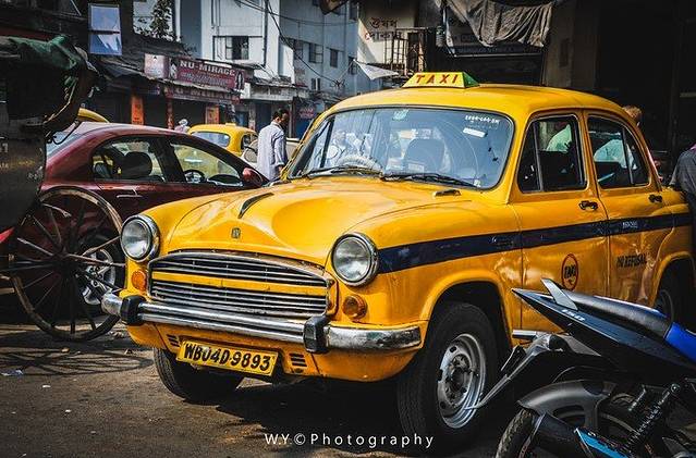 加尔各答的标志:黄色旧出租车,不带后视镜的噢