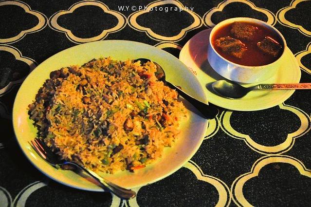 【主食】选择炒饭总没错!各种各样的饼,原谅我研究不出个所以然来。特色菜:黄油鸡,炉泥烤鸡, 吃到后来已经不管啥叫啥的了,反正看上去都是糊糊。