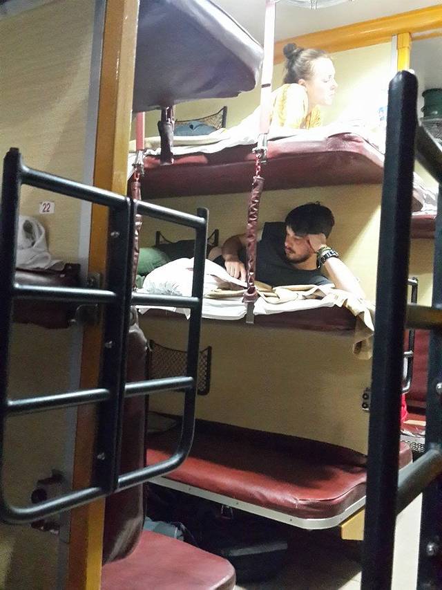 Tutu车把我们拉到买票的地方250Rs/人,然后把我们送到大巴车上,明明买的是卧铺的,我们还天真的以为真的是卧铺,先爬上去躺好了,结果卖的人把我们赶下来,说这个是只能坐着的,一定要让我们坐在位置上