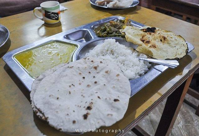 【自备干粮】行程前一半时间,还觉得印度菜挺好吃的,没有什么不适,到后来就不行了,改不了的中国胃啊!多带点肉干,除了加尔各答,斋普尔,阿格拉,德里,其他地方很难大口吃到肉。泡面和榨菜也不能少。