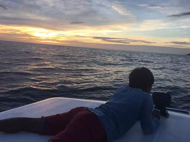 订一日游记得提前预定。八点司机就来到酒店接人,然后就开往码头~主要的导游全程中文,交流无障碍!晕船记得吃晕船药!!早上刚出海还在下雨,去到珊瑚岛时,已经是大大的太阳了。在珊瑚岛是玩水上项目的,皇帝岛浮浅时,浪有点大,对我这个不会游泳的孩子来说简直就要崩溃了。幸好有这美丽的大海安慰我~哈哈哈。水真的是碧蓝碧蓝的~直接就可以看到海底了!今天最后的行程是海上看日落,拟补了没有在卡塔海滩的遗憾,而且是坐在船头吹着海风看日落~~~真想时间能再那一刻慢一点,再慢一点。回到酒店7点半左右。(都是包接送到酒店的,非常方便)