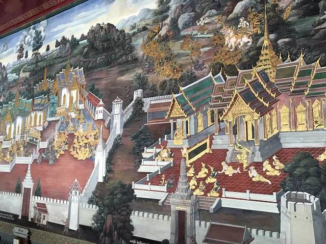 早上十点起来,准备去大皇宫看看~因为以为早点人不多...事实证明我错了。十一点去到看到那叫一个人山人海,真不敢想象旺季的时候来是什么样子的。记得进去要穿长裙或者裤子,不能穿露肩膀的,T就可以了。然后就可以排队买票的。大家都说大皇宫必去~虽然我不喜欢去逛这些,但还是去了一个,感觉还可以,因为我喜欢里面的壁画,画得很好。大概一个小时多点就出来了。接着就去了市区购物~也是坐的公交,这次坐到的是没有空调的公交,居然是免费。因为附近没有地铁所以没有坐,感觉有点可惜,没有体验到。晚上又去了考山路闲逛了~