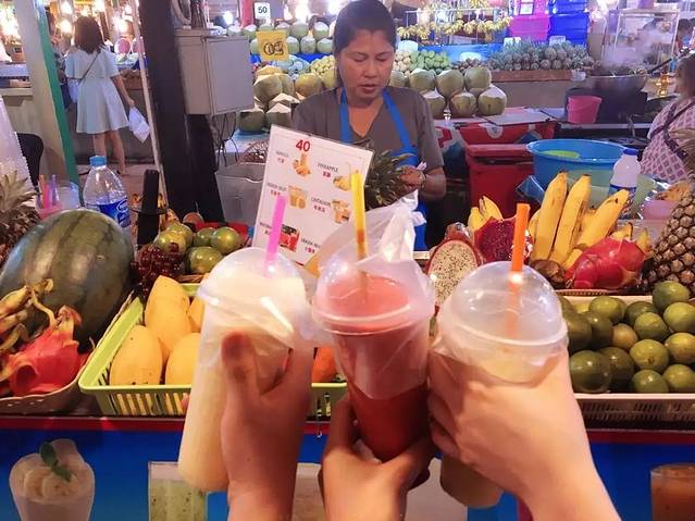 去之前看了很多推荐的食物,菠萝炒饭,冬荫功,芒果糯米饭...个人口味吗???反正我是吃不惯了.....找了个M记吃了一次,还不错哦~哈哈哈哈。还是有好吃的东西啦!!海鲜还是很不错的选择!!还有就是他们的榨果汁!!来到泰国怎能放过新鲜咂舌的鲜榨果汁,国内真的很少稳得到这么好喝又便宜的咯!