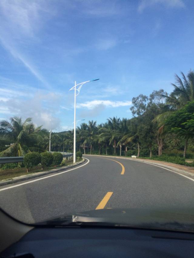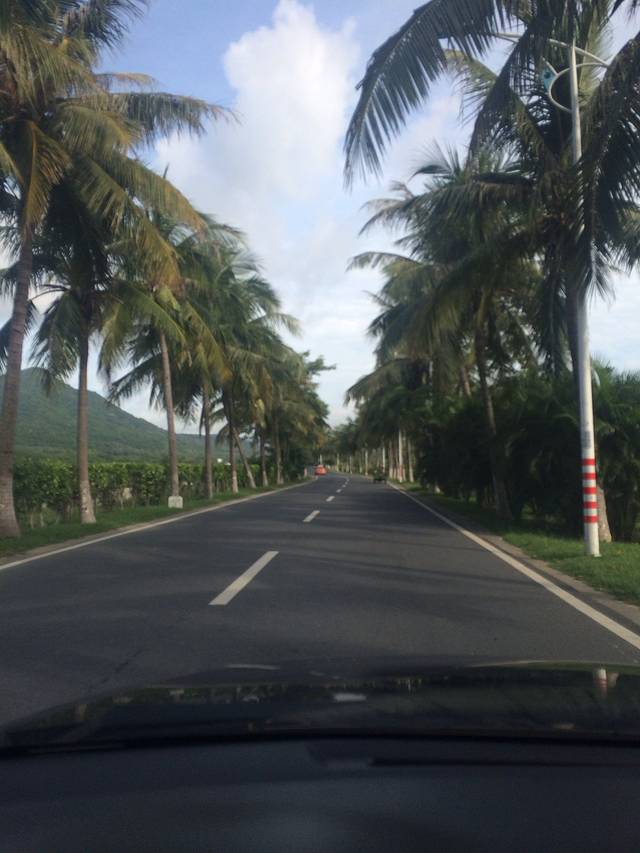 开上车,首先把油加满,北京是6快多一升,海南是7.17,虽然油价比咱们贵几毛,但人家走高速是全程不收任何费用的,对你没听错,真的是一毛钱都不收哦!在高速公路上,沿途一路的好风光,车很少,可以边走边欣赏风景!路上很有趣,一会路过一段有黑☁️的路段,就开始☔️,刚开始我都不敢开,旁边的车照样没有减速,可能人家已经习惯了!过雨路段我就打着双闪,慢悠悠的,一路上经历了四五次后来我也习惯了!开了三个多小时,到了亚龙湾旁边的村子---六盘口村