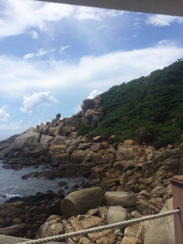 中国的小马尔代夫---蜈支洲!我们头天晚上入住的蜈支洲附近,说起附近,就是溜达溜达就到海边了!上午去了蜈支洲码头座船上岛,门票是提前在网上订的,一人140,孩子不要钱,进去才发现里面有些景点不座电瓶车是看不到的,岛上有Wi-Fi,我用淘宝买的130的票,相当于实际景区150的电瓶车票!途中下了10多分钟晴天雨,闺女在电瓶车上睡着了,转了六个景点我们也没下车,只听讲解员边走边说!这里的原生态还是值得一赞的,以后孩子大了可以带她来潜水!中午我们吃的一份凉皮30、一份炒面40、一份清补凉35!吃完饭,寄了两张明信片,开车回了海口!