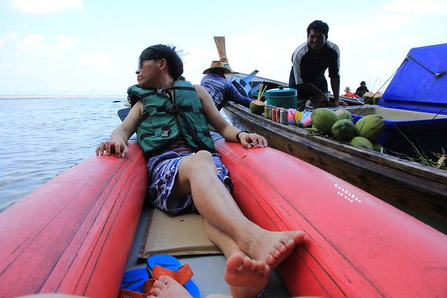 划皮划艇的时候,椰子会有好几个点给你,船上的小黑,也会很乐意给你拍照,反正人就是超好就对了,起码我们那条不错,想和椰子是要30B,化完之后记得给消费20B,所以我说在泰国20B真的是万金油,因为后面要用到20B的地方有好多。比如,每天早晨要放20B,别人给你服务了给他20B,反正起码20B。