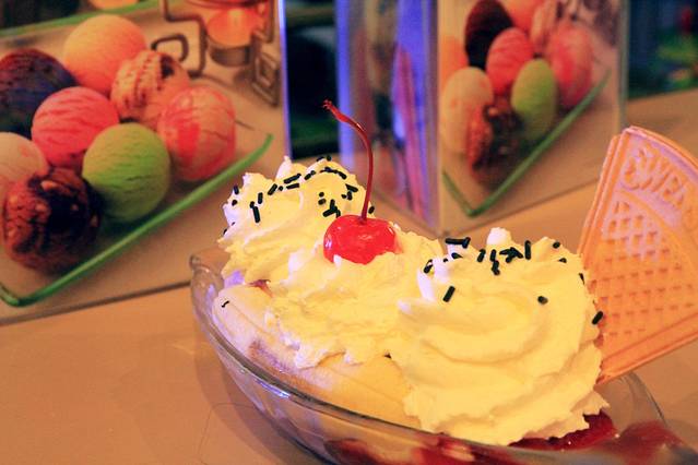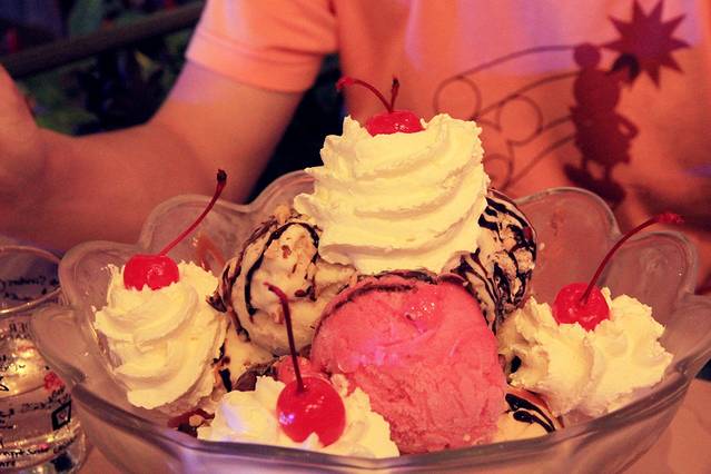 后来我们想吃冰激凌。。我们就偷偷跑去吃了。