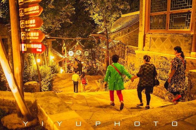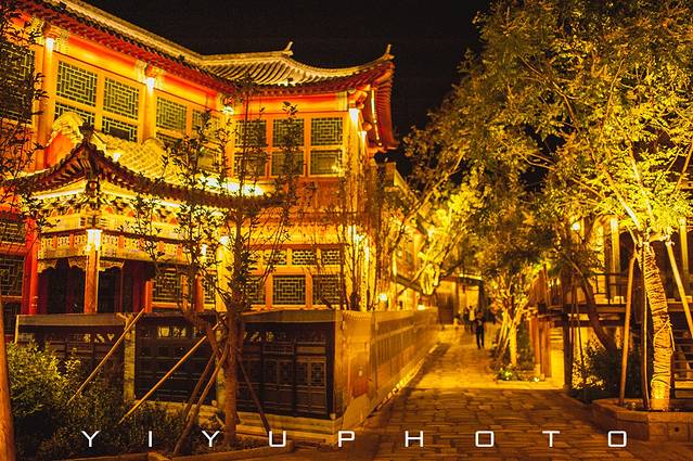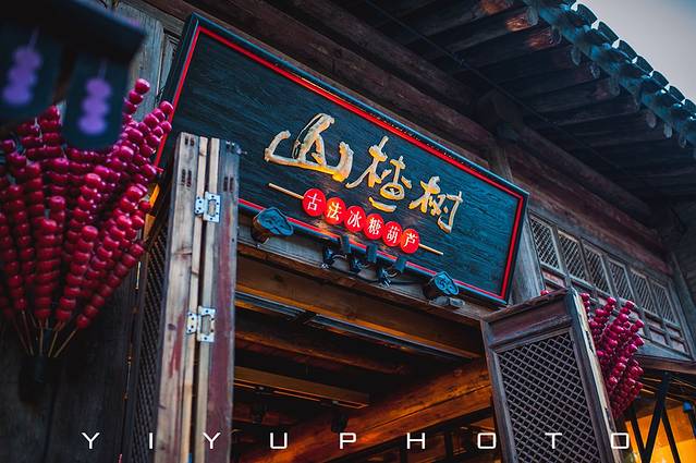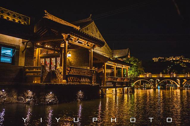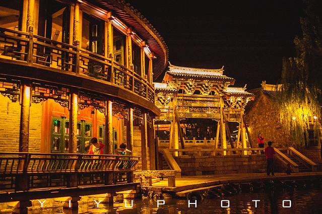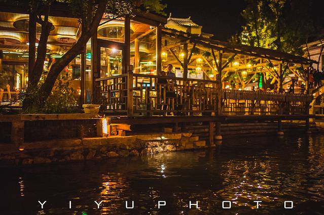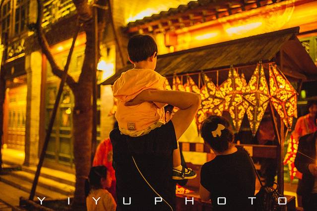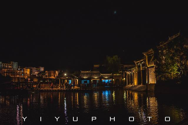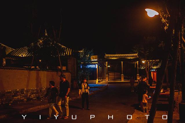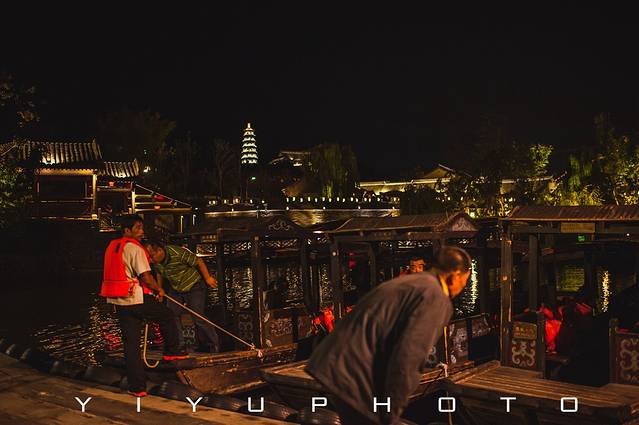 在客栈放好东西,游览了入口处的景点,吃了美食,夜色渐渐降临,就准备去坐游船了。在走去码头的路上,各种各样的店铺鳞次栉比,三三两两的游客玩得开心,各种可以参与其中的互动项目实在是有趣。