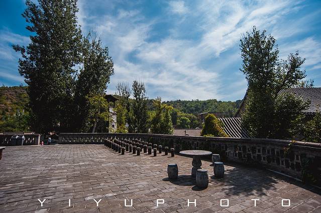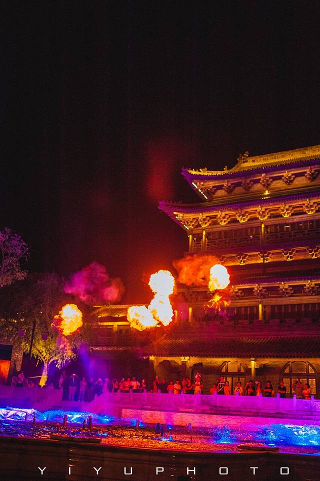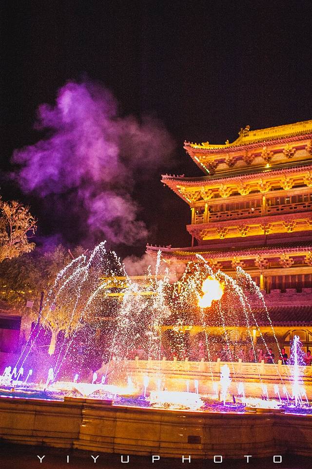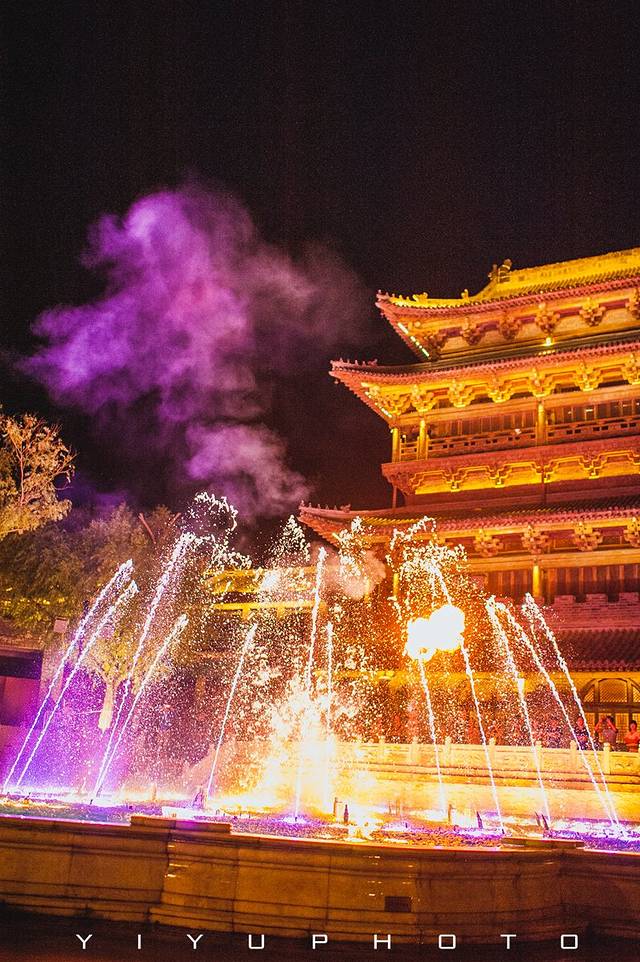 因为爬长城实在太耗体力,我们直接去古北水镇最新最有特色的音乐喷泉观赏,真是大开眼界。音乐喷泉位于望京街水舞剧场,这里的高楼远远就可以眺望到,走过来发现已经有游客围城一圈等候在这里了。