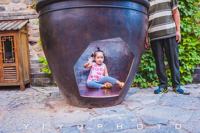 门口被司马光砸破的缸恰好有个小朋友在里面,特别可爱。