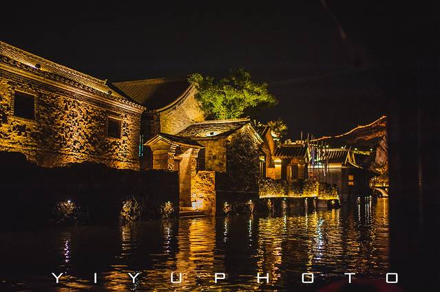 一路向上的游船时而宁静时而喧闹,都是取决于水路两侧的景观,快到终点结束也就到了长城的起点。可以看到非常壮美的一道长城线亮在夜空中。 乘坐乌篷船并不是独特的游船体验,而随着水波的荡漾,经过两岸灯火倾城的枕水人家,望着被灯光点亮的蜿蜒的司马台长城,这种独特的体验,只在古北水镇才能领略到。