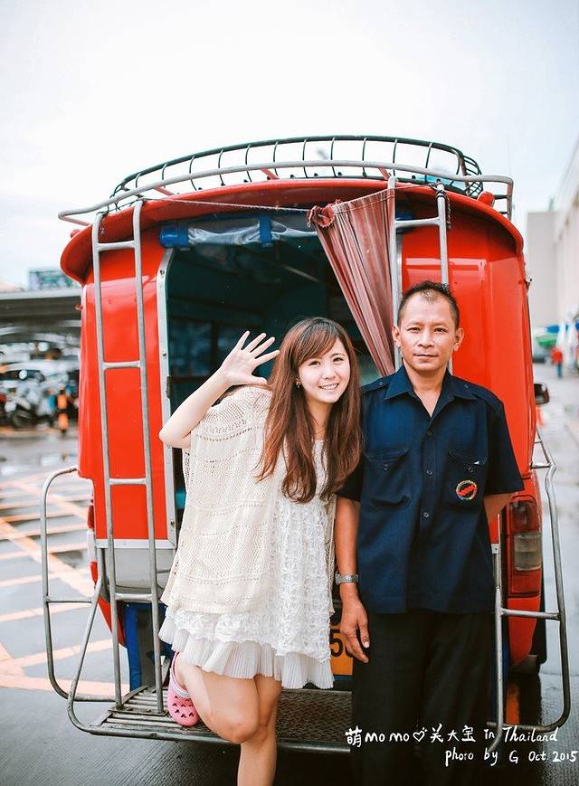 下车后momo要求跟司机照相,司机非常腼腆,像个大男孩~
